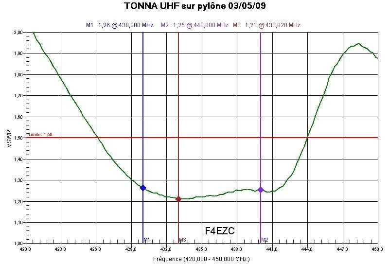 Exemple de courbe réelle Yagi UHF Tonna :