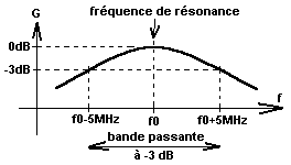 Dans ce cet exemple, la bande passante de l'antenne à -3dB est de +/- 5 MHz, soit 10 MHz. Si f0 = 70 MHz, l'antenne peut fonctionner raisonnablement de 65 à 75 MHz. |