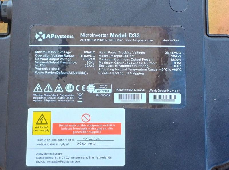 | 2 panneaux solaires. Micro-onduleurs APSYTEMS DS3 880VA |