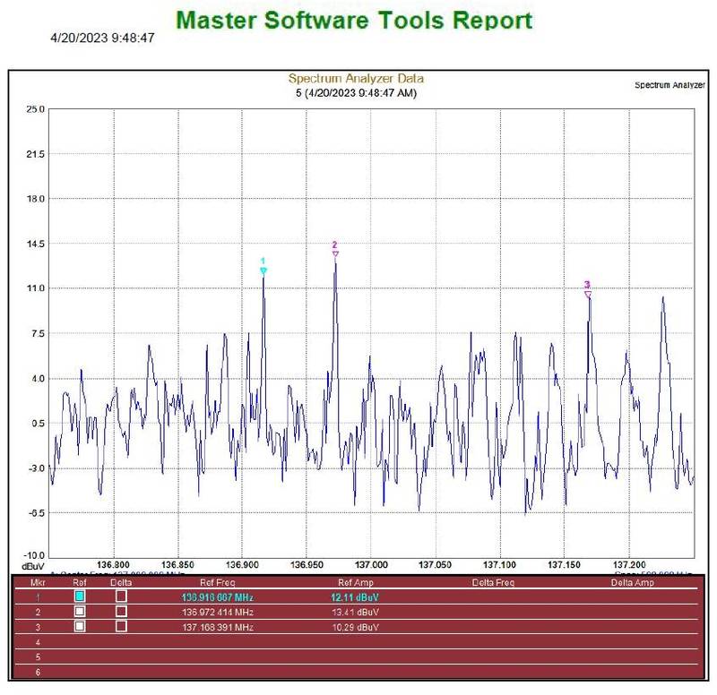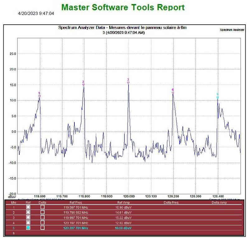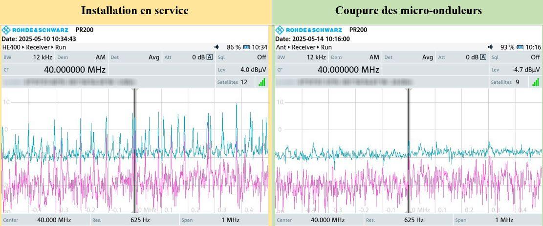 | Mesures dans la zone perturbée : (430 MHz, 860 MHz et 1289 MHz) |