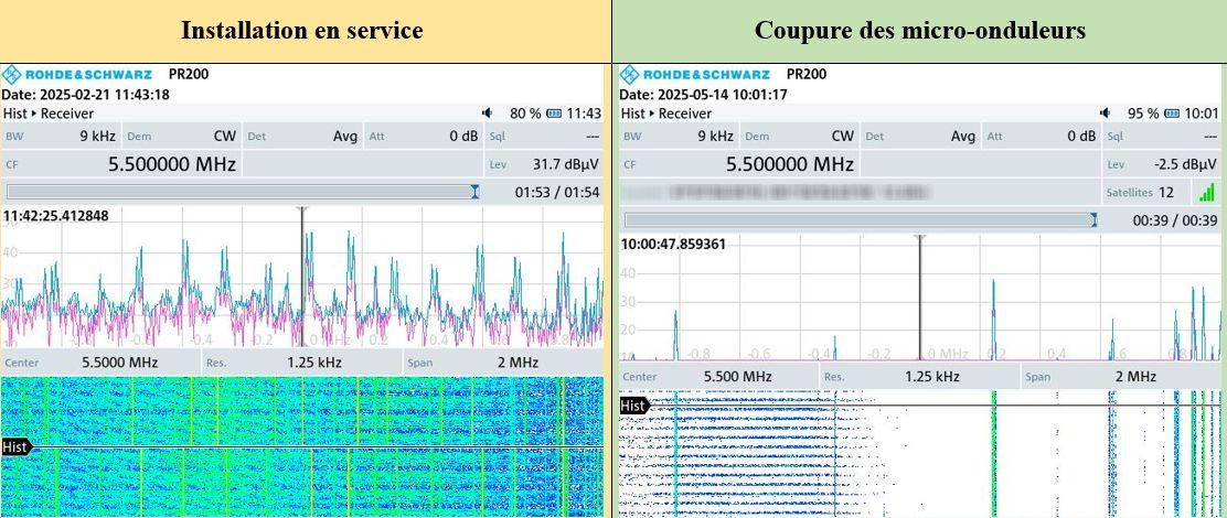 | Enregistrements audio et mesures, brouillage HF à 10 MHz. (Sur antenne dipôle filaire). | |