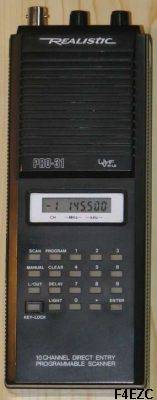 SCANNER REALISTIC PRO-31 Mode : FM uniquement. Fréquences couvertes : 68 à 88 MHz, 136 à 174 MHz et 380 à 512 MHz. Remarque: ce matériel simple ne scanne pas de fréquences, mais uniquement ses 10 mémoires que l'on doit programmer manuellement. |