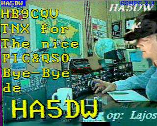 Martin 1 Robot 36 Radioamateur Français lançant un appel en SSTV. Radioamateur Portugais communicant avec l'Algérie. Radioamateur Hongrois communicant avec la Suisse. Radioamateur Marocain communicant avec la France. 73 Voir aussi quelques exemples de l'espace : SSTV ARISS |
